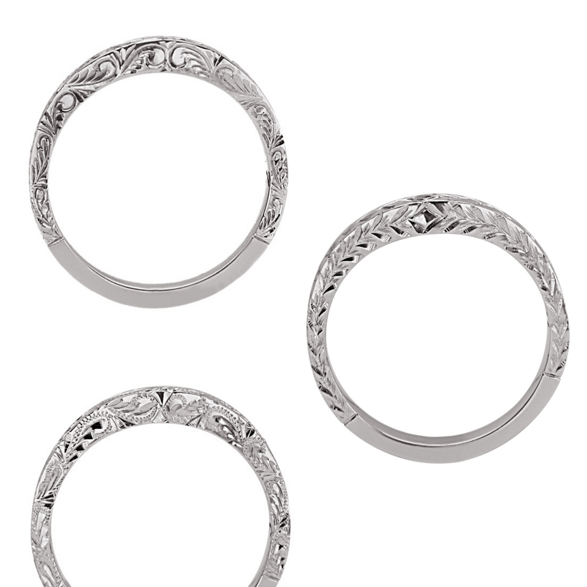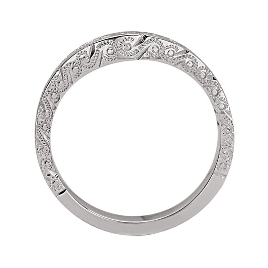 Loving Embrace has been a great help to our clients finding the perfect curved band to wrap around their antique and vintage engagement rings. Having so many options to choose from, in both the degree of curve