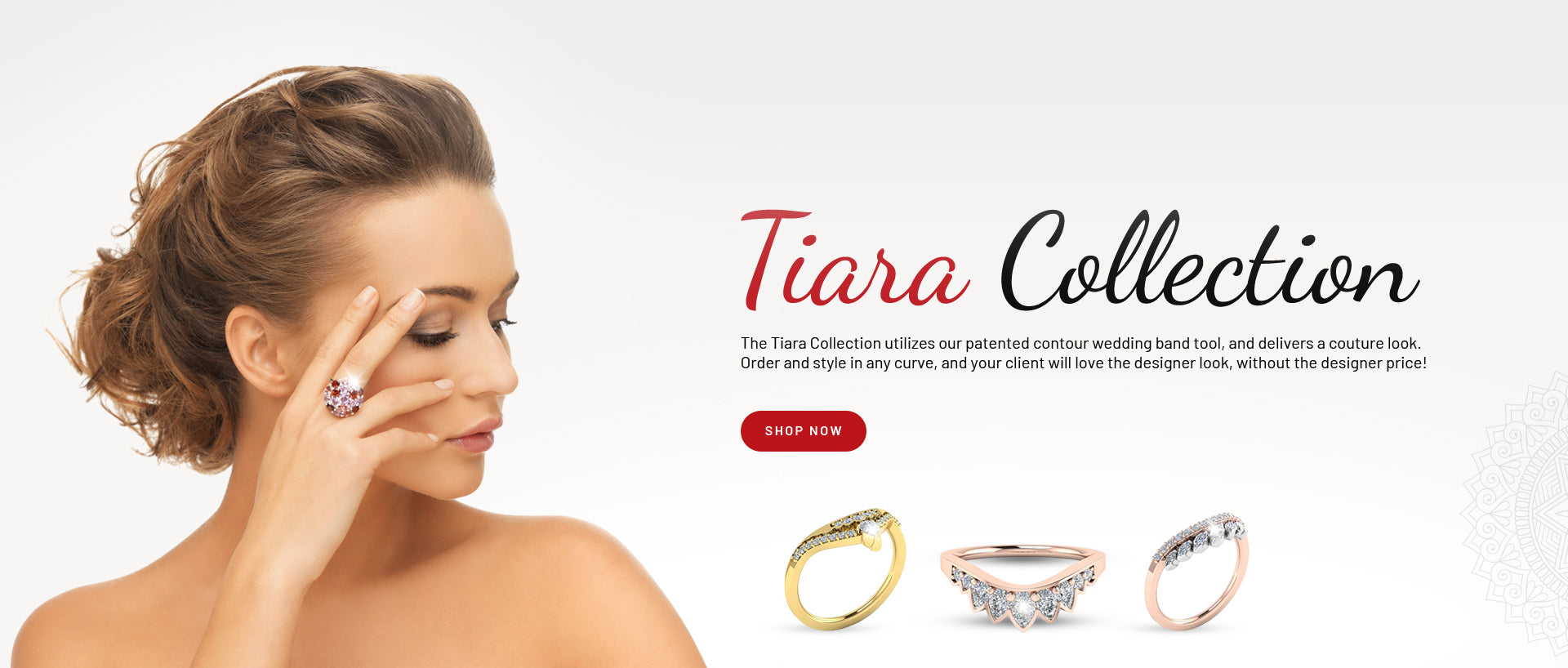 Once you know your customer's curve number, they can choose from twenty six popular diamond setting styles, or four shadow band styles.