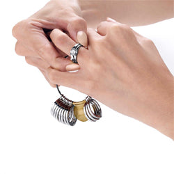 With our patented (U.S. Pat. No. 9,360,293 B2) 12-piece contour sizing set, you will try different contour bands until you find the perfect fit for your customer's ring.