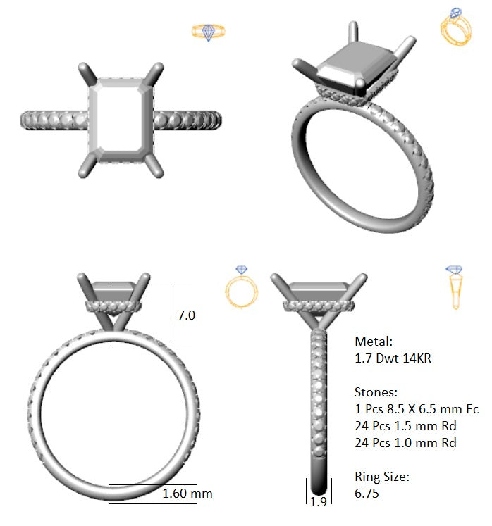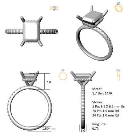 | Center Stone Dimensions | 8.5x6.5mm Emerald | ||